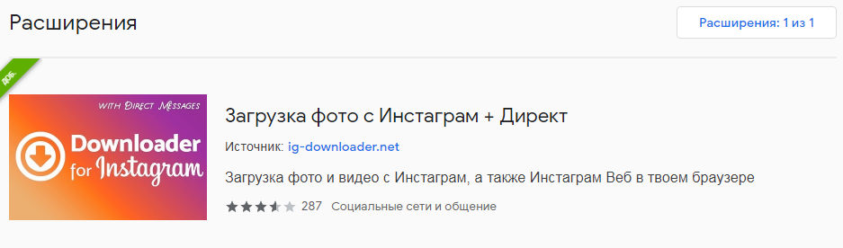 Еще одно расширение для удобного использования Инстаграма через ПК. Набор опций и функций стандартный. Расширение позволяет дополнительно пользоваться Директом (хотя на текущий момент есть возможность переписываться через Инстаграм-мессенджер с обычной браузерной версии соцсети).