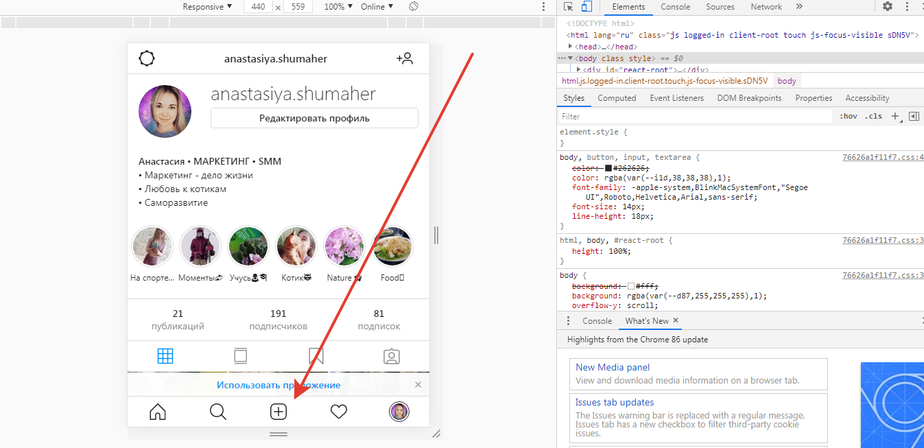 Рассмотрим проверенный и несложный способ загрузки фото в Инстаграм с компьютера вручную.
