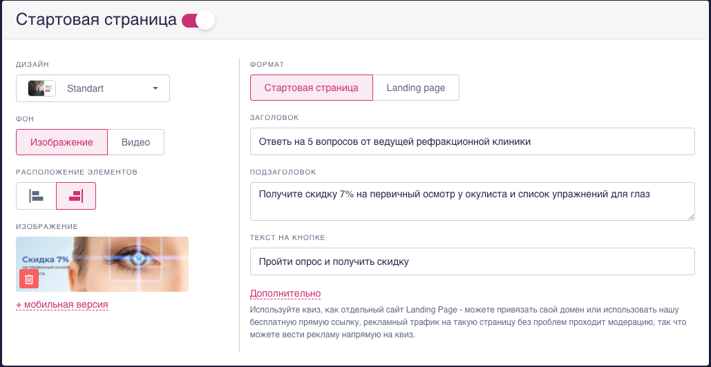 Стартовая страница должна захватить пользователя и убедить его пройти тест до конца. Поэтому создавайте ее, соблюдая следующие правила: