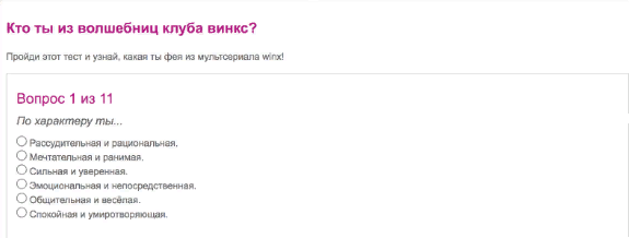 И вы точно, 100%, ну хотя бы один раз проходили подобный тест. Каждый хоть раз хотел узнать "Какая ты феечка Винкс?" или "Кто ты из вселенной Марвел?"